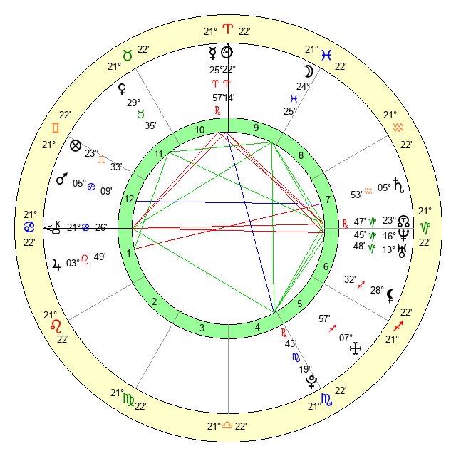 | Moon | 24 Pisces 22 | 19 Libra 6 | 29 Gemini 48 |
