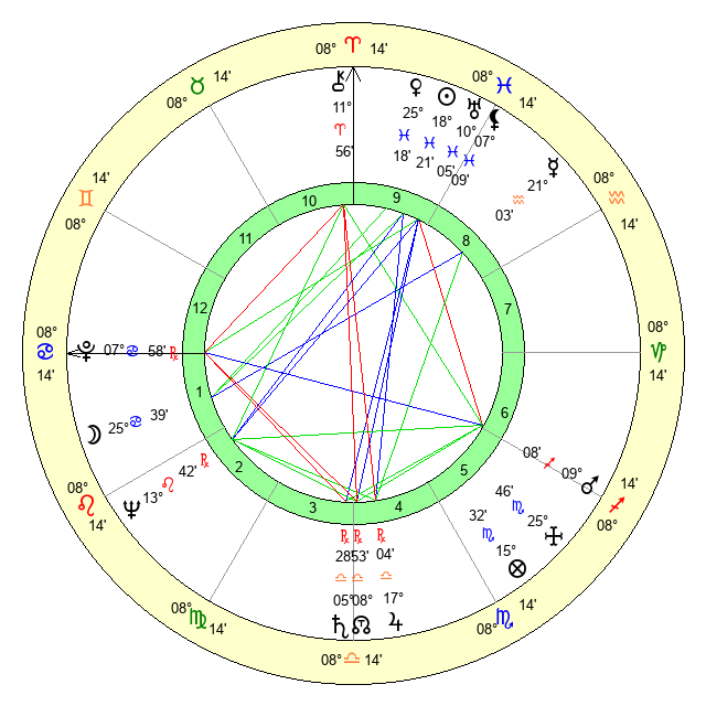 | Moon | 25 Cancer 48 | 26 Cancer 47 | 3 Taurus 54 |