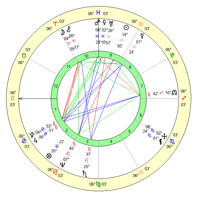 | Neptune | 7 Leo 44 | 28 Pisces 4 | 6 Leo 50 |