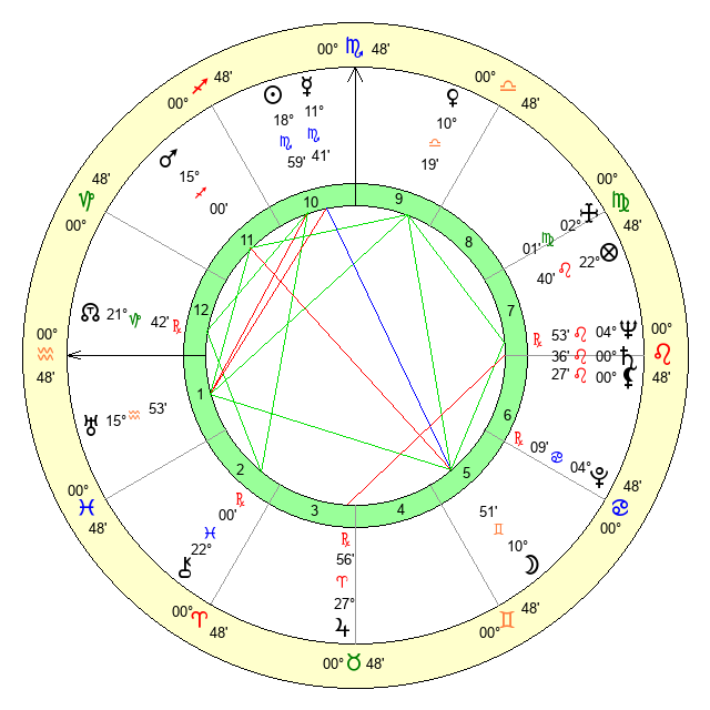| Moon | 10 Gemini 50 | 13 Leo 9 | 9 Gemini 45 |