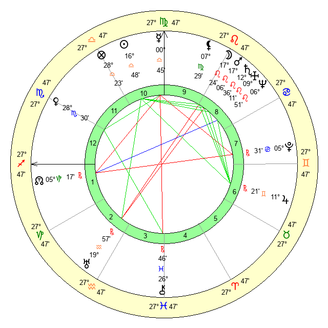 | Venus | 28 Scorpio 31 | 26 Virgo 3 | 27 Aquarius 39 |
