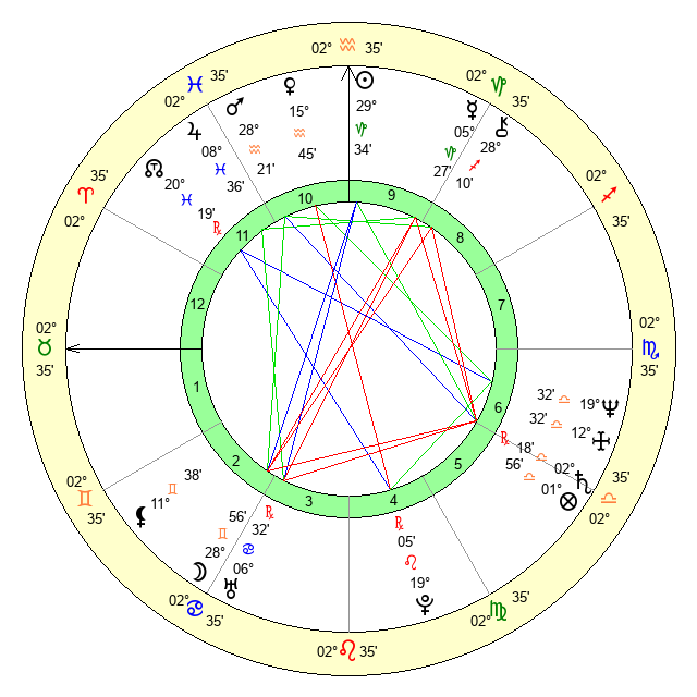| Sun | 29 Capricorn 35 | 0 Aquarius 38 | 13 Aries 52 |