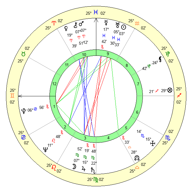 | Sun | 3 Pisces 33 | 4 Pisces 19 | 15 Gemini 25 |