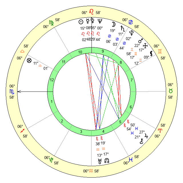| Neptune | 0 Leo 45 | 1 Aries 51 | 2 Leo 33 |