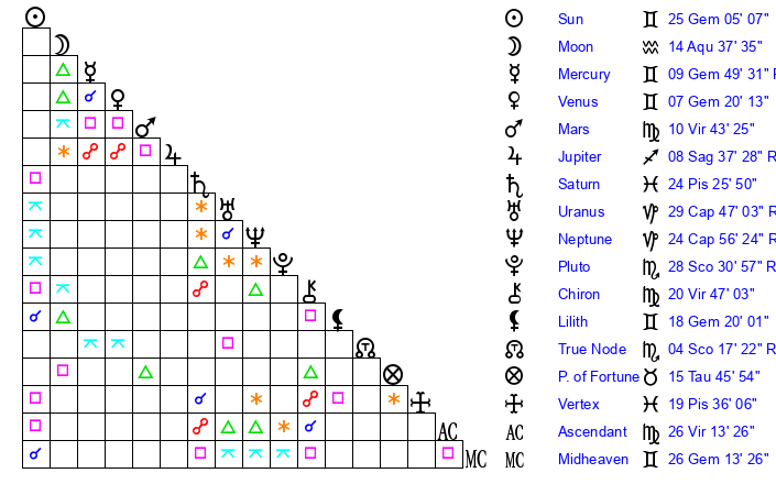 Moon | 14 Aquarius 39 | 29 Aquarius 19 | 20 Pisces 59 |