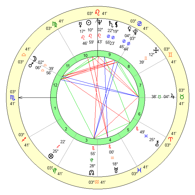 | Moon | 2 Libra 41 | 5 Sagittarius 27 | 29 Virgo 21 |