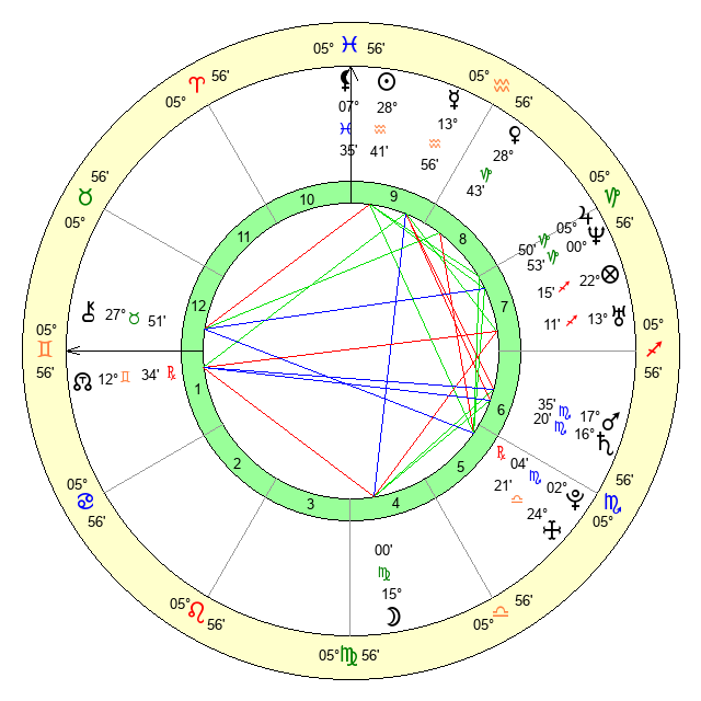 | Moon | 14 Virgo 55 | 1 Scorpio 40 | 13 Pisces 55 |