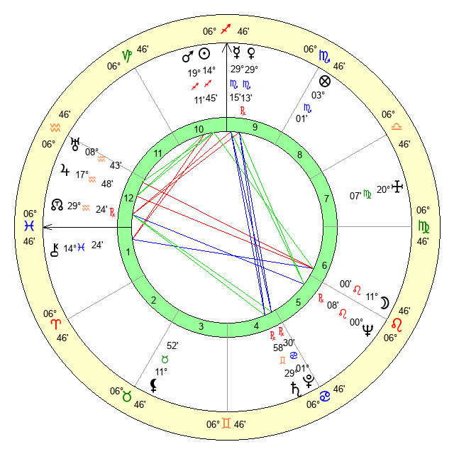 | Moon | 11 Leo 0 | 23 Cancer 58 | 3 Virgo 20 |