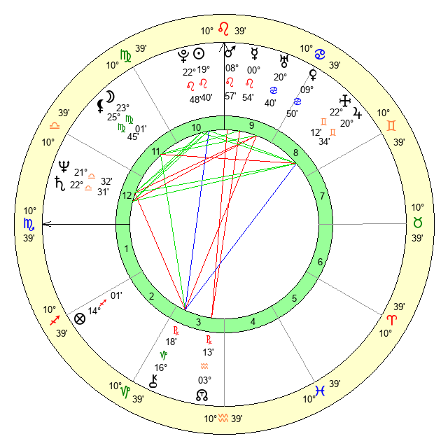 | Moon | 23 Virgo 2 | 3 Aries 42 | 16 Taurus 22 |