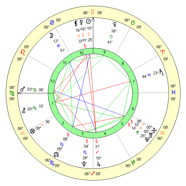 | Mars | 3 Virgo 5 | 21 Leo 16 | 18 Virgo 34 |