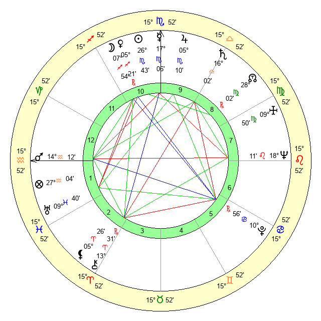 | Moon | 7 Sagittarius 57 | 22 Scorpio 51 | 6 Virgo 56 |