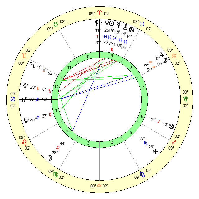 | Venus | 25 Pisces 53 | 9 Aries 16 | 11 Leo 19 |
