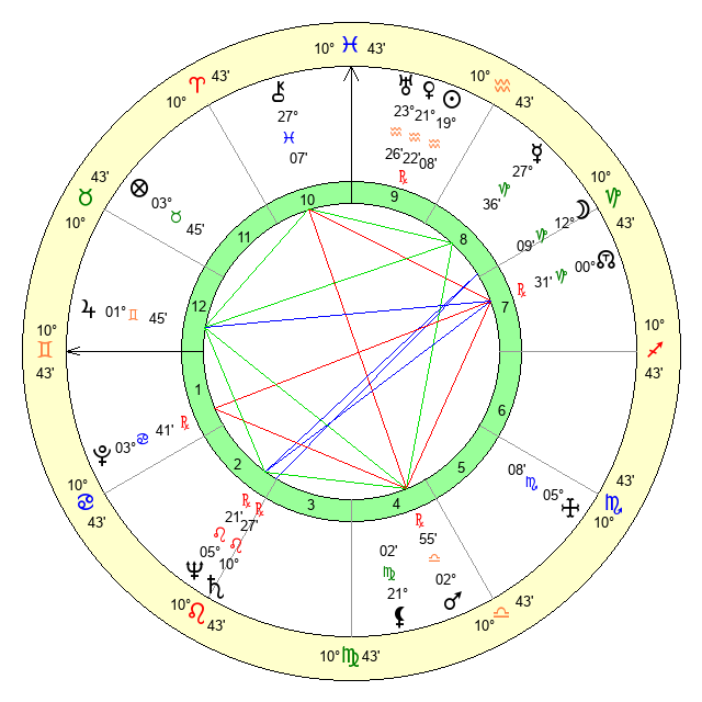 | Sun | 19 Aquarius 8 | 20 Aquarius 11 | 4 Gemini 36 |