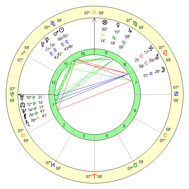 | Jupiter | 8 Virgo 59 | 24 Cancer 53 | 13 Virgo 16 |