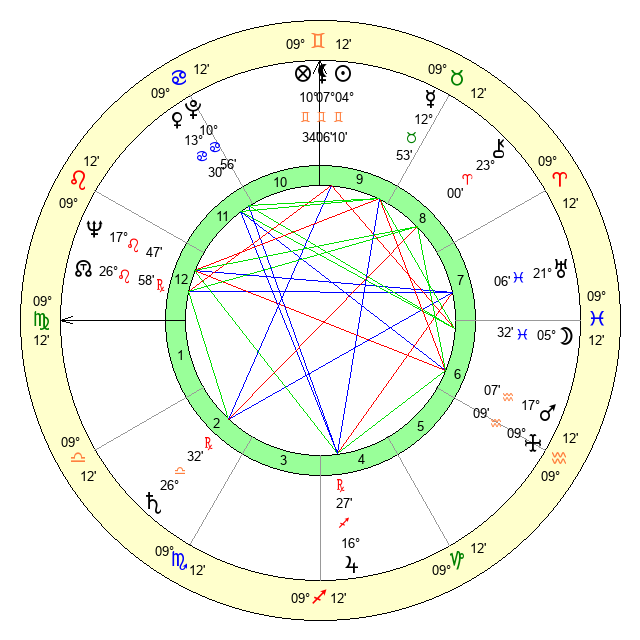 | Saturn | 27 Libra 12 | 29 Pisces 56 | 29 Libra 33 |