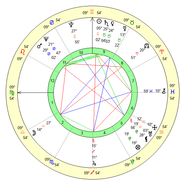 | Jupiter | 10 Sagittarius 57 | 26 Gemini 50 | 8 Sagittarius 16 |