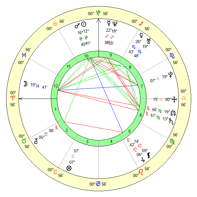 | Moon | 19 Pisces 32 | 0 Pisces 18 | 12 Scorpio 31 |