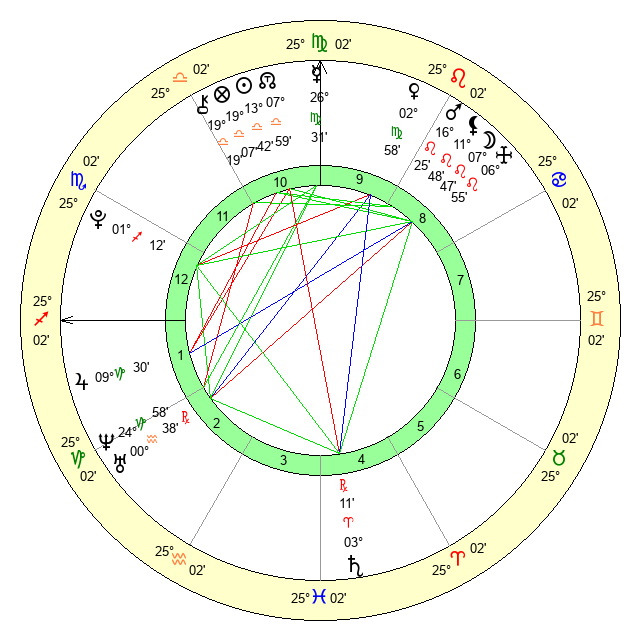 | Mars | 16 Leo 25 | 9 Scorpio 46 | 2 Virgo 58 |