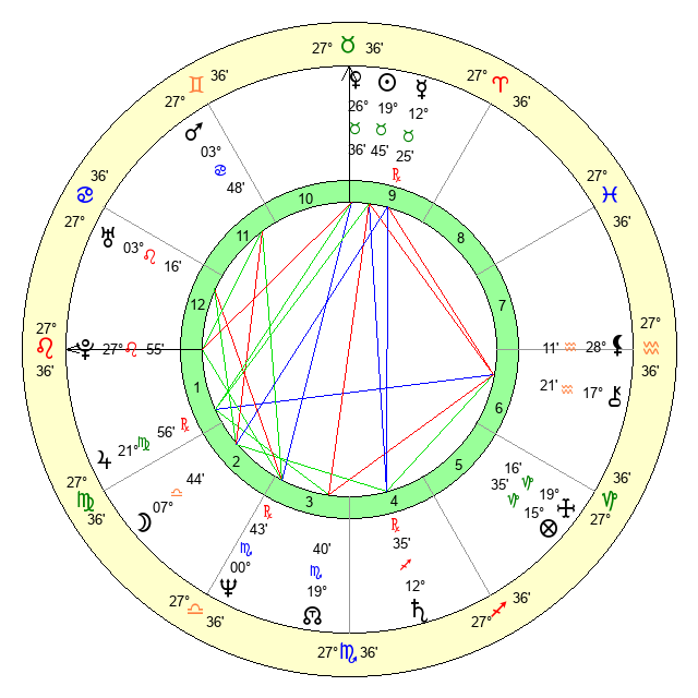 | Pluto | 27 Leo 54 | 3 Aquarius 48 | 28 Leo 58 |