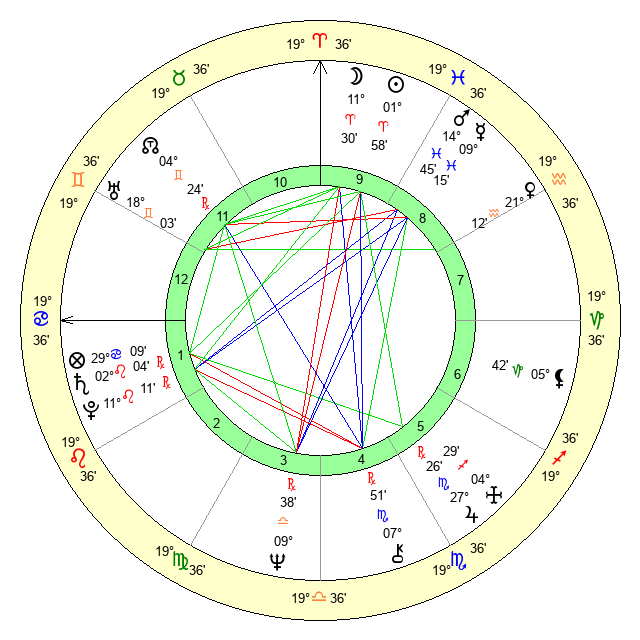 | Moon | 11 Aries 33 | 14 Capricorn 19 | 19 Aquarius 24 |