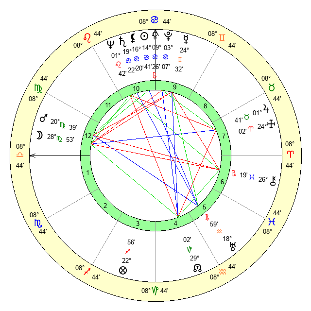 | Neptune | 1 Leo 52 | 27 Pisces 17 | 29 Cancer 54 |