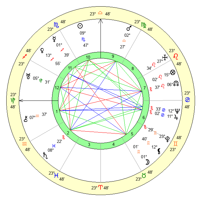 | Moon | 1 Gemini 3 | 6 Aries 55 | 3 Libra 6 |