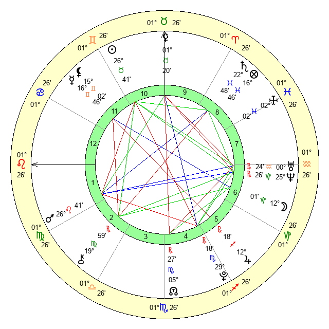 | Pluto | 29 Scorpio 17 | 3 Aquarius 46 | 28 Scorpio 29 |