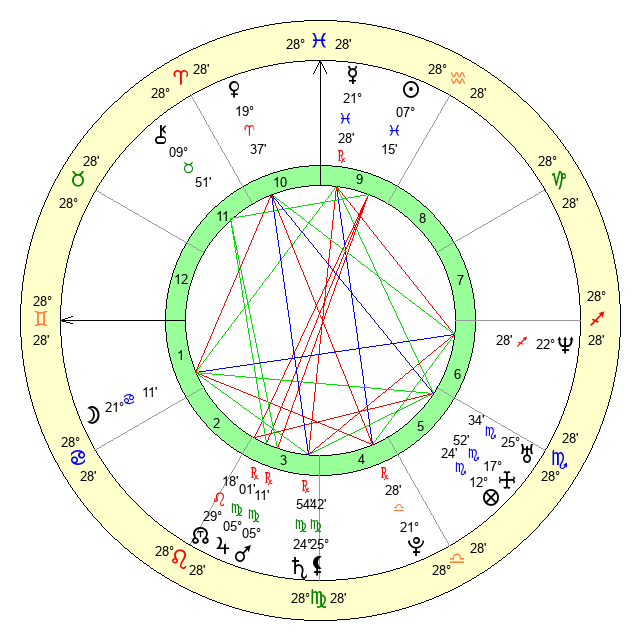 | Saturn | 25 Virgo 20 | 20 Pisces 20 | 21 Virgo 58 |