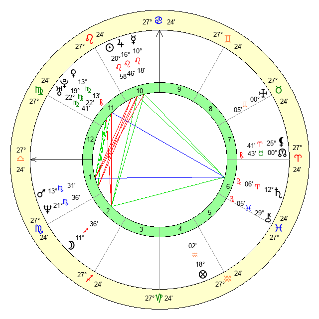 | Venus | 13 Virgo 13 | 16 Cancer 41 | 5 Virgo 4 |