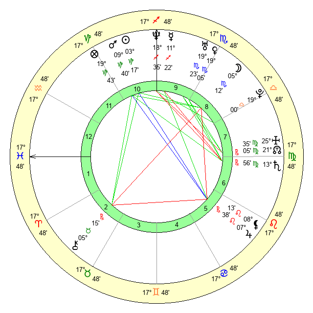 | Saturn | 14 Virgo 20 | 14 Pisces 0 | 12 Virgo 32 |
