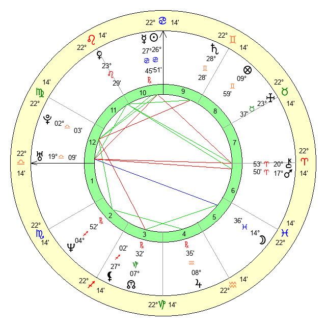 | Sun | 26 Cancer 51 | 27 Cancer 16 | 16 Virgo 51 |