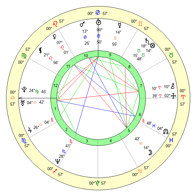 | Jupiter | 25 Libra 56 | 2 Cancer 56 | 0 Scorpio 1 |