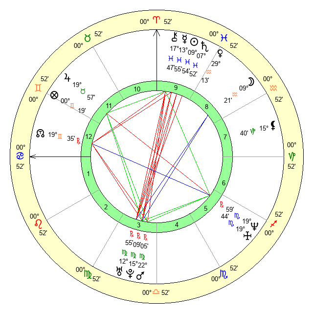 | Moon | 9 Aquarius 17 | 19 Pisces 32 | 16 Aries 20 |