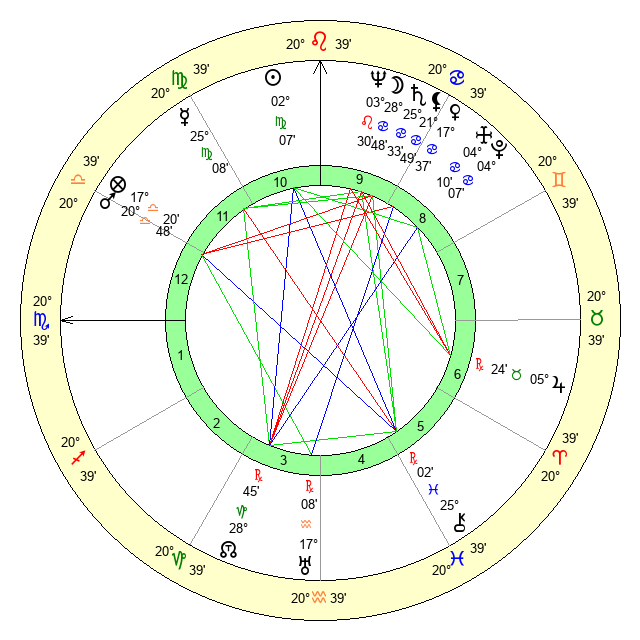 | Mercury | 25 Virgo 9 | 16 Leo 6 | 0 Capricorn 38 |