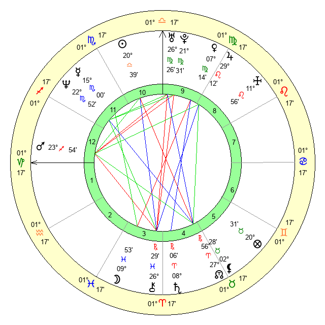 | Moon | 9 Pisces 54 | 3 Leo 23 | 21 Aries 27 |
