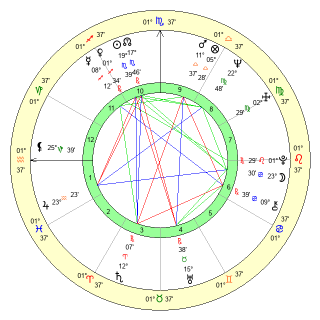 | Moon | 23 Cancer 16 | 6 Aries 36 | 20 Virgo 28 |