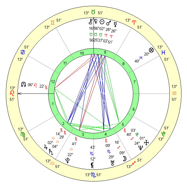 | Jupiter | 2 Libra 3 | 19 Gemini 45 | 0 Libra 25 |
