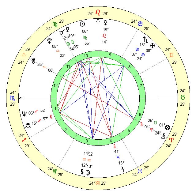 | Mercury | 19 Virgo 6 | 24 Leo 39 | 7 Scorpio 23 |