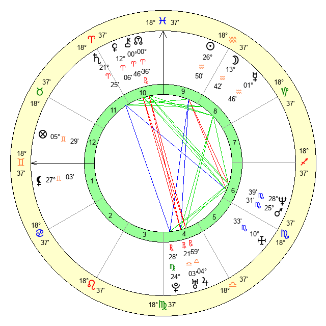 | Jupiter | 4 Libra 51 | 11 Gemini 29 | 28 Virgo 20 |