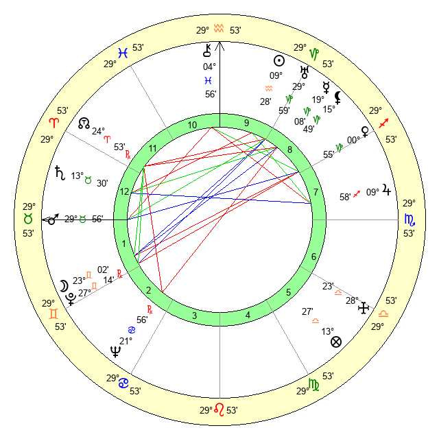 | Moon | 23 Gemini 18 | 26 Aquarius 25 | 19 Leo 40 |
