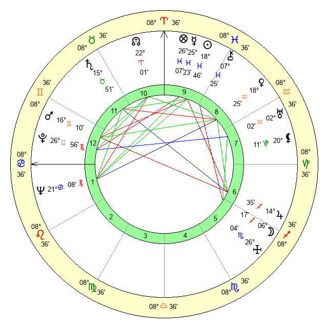 | Neptune | 21 Cancer 8 | 29 Pisces 13 | 22 Cancer 56 |