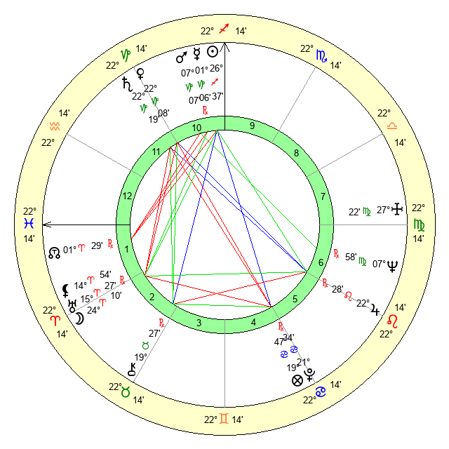 | Moon | 24 Aries 11 | 19 Leo 44 | 16 Virgo 22 |