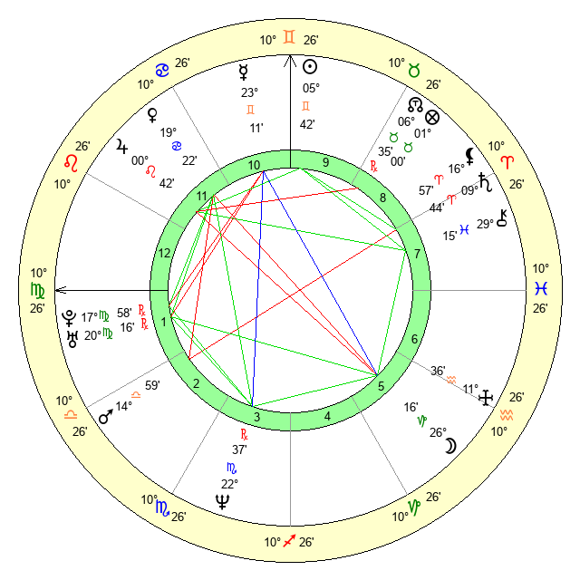 | Sun | 5 Gemini 43 | 6 Gemini 39 | 1 Leo 6 |