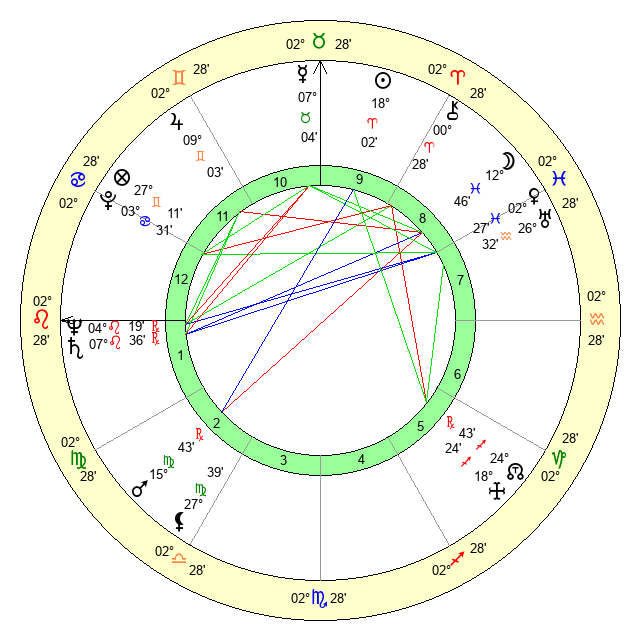 | Neptune | 4 Leo 19 | 0 Aries 20 | 6 Leo 36 |