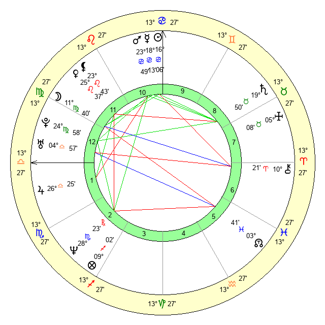 | Mars | 23 Cancer 49 | 12 Virgo 16 | 29 Leo 3 |