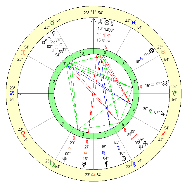 | Mars | 3 Gemini 54 | 23 Cancer 59 | 8 Cancer 4 |