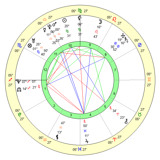 | Moon | 16 Leo 44 | 11 Gemini 23 | 26 Gemini 24 |
