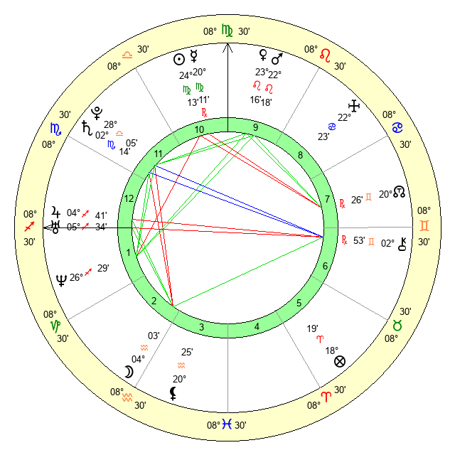| Sun | 24 Virgo 14 | 25 Virgo 3 | 5 Scorpio 42 |