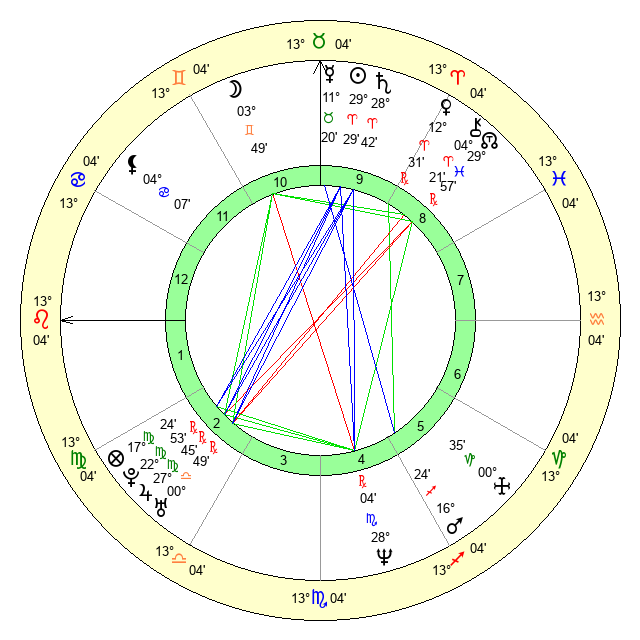 | Neptune | 28 Scorpio 4 | 0 Aries 43 | 26 Scorpio 38 |