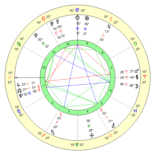 | Sun | 15 Cancer 32 | 16 Cancer 18 | 19 Virgo 54 |